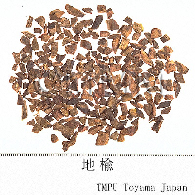 | 備考 | 地楡の原植物である Sanguisorba officinalis の変種には,var. longifolia (Bert.) Yu et Li の他,var. carnea (Fisch.) Regel ex Maxim. エゾワレモコウ,var. glandulosa (Kom.) Worosch,var. longifolia (Kitag.) Yu et Li が含まれる.これらの他,中国東北地区では S. tenuifolia Fisch. ex Link 及びナガボノシロワレモコウ S. tenuifolia Fisch. ex Link var. alba Trautv. et Meyer ,山東省烟台地区では S. applanata Yu et Li 及びその変種,寧夏地区の一部では S. alpina Bunge の根を 「地楡」 として薬用にしている.また貴州省貴陽地区では,タデ科/Polygonaceae の イブキトラノオ Polygonum bistorta L. の根茎を 「地楡」 と称しており,四川省南部では イタドリ Polygonum cuspidatum Sieb. et Zucc. の根茎を 「土地楡」 と称している. その他,河南省信陽ではユキノシタ科/Saxifragaceae の Astilbe chinensis Maxim. ex Fr. et Sav. の根茎を,雲南省昆明地区ではフクロソウ科/Geraniaceae の Geranium strictipes Kunth の根を 「紫地楡」 または 「赤地楡」 と称している.さらに雲南省の一部では,バラ科/Rosaceae の Potentilla peduncularis D. Don 及び P. siemersiana Lehm. の根を 「白地楡」 と称している.すべて地楡としては誤用である. 韓国市場の地楡 (Jiyu) 市場品は多くが S. officinalis L.,S. officinalis L. var. longifolia (Bert.) Yu et Li 及び S. tenuifolia Fisch. ex Link var. alba Trautv. et Meyer の根の混合品であった(B1). | |||||