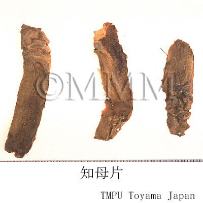 | 成分情報 | ステロイドサポニン及びサポゲニン Steroid saponins & Sapogenins (*C1): Timosaponin A-I, Timosaponin A-II, Timosaponin A-III, Timosaponin A-IV, Timosaponin B-I, Timosaponin B-II, Sarsasapogenin, Markogenin, Neogitogenin キサントン類 Xanthones (*C1): Mangiferin, Isomangiferin アミノ酸 Amino acids (*C1): Pantothenic acid ピリジンアルカロイド Pyridine alkaloids (*C1): Nicotinic acid | |||||
