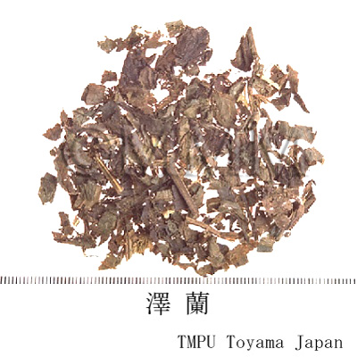 | 備考 | 湖北,湖南,福建,広東,広西省などの一地区では,キク科/Compositae の フジバカマ Eupatorium fortunei Turcz. (蘭草, 佩蘭) を沢蘭と称して用いている.また貴州省に産する沢蘭は,ベンケイソウ科/Crassulaceae の Penthorum chinense Pursh. の全草であり,四川省に産する「紅沢蘭」は,タデ科/Polygonaceae の Polygonum属もしくはキツネノマゴ科/Acanthaceae の植物であるが,正確な種は不明である. 日本産の沢蘭は,キク科/Compositae のフジバカマ Eupatorium fortunei Turcz. (徳島, 香川産) ,および サワヒヨドリ E. lindleyanum DC. (群馬産) の全草を乾燥したものが出回ったことがある. | |||||