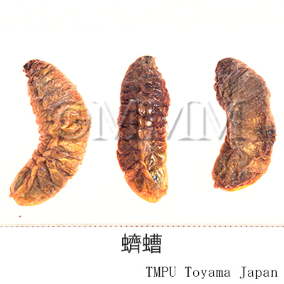 | 備考 | 鞘翅目/Coleoptera,コフキコガネ科/Lachnosternaの チョウセンクロコガネ Holotrichia diomphalia Bates の幼虫の全乾燥体を基源としているが,このほか,同科の 棕金亀子 H. sauteri Moser,スジコガネ科/Anomala (= Rutelinae)の ドウガネブイブイ Anomala carpulenta Motsch,および 無翅黒金亀子 Trematodes tenebriodes Pallas を原昆虫に加えることもある.市販品としての蠐螬は,単一の種であることは稀で,コフキコガネ科/Lanchnosterna (= Melolonthinae),スジコガネ科/Anomala (= Rutelinae),ハナムグリ科/Protaetia (= Cetoniinae),カブトムシ科/Dynastidaeなどの幼虫が含まれている場合が多い.また市販品中には,コフキコガネ科で日本にも産する オオクロコガネ Lachnosterna morosa Waterhouse の近縁のものもみられる.『名医別録』などには,蠐螬は,背を下にして移動するように記しているが,市販品中には,この習性をもつハナムグリ科の シロテンハナムグリ Protaetia orientalis Gory et Percheron と見なされる幼虫がある.上記いずれの科も極めて多くの種類があり,幼虫の種までの分類は非常に困難である.なお,台湾では,コフキコガネ Melolontha japonica Burmeister の幼虫が用いられる. |