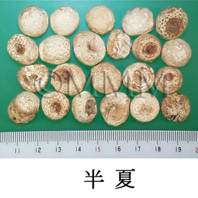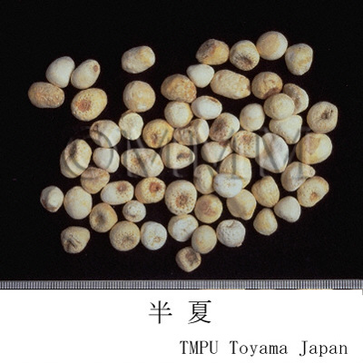 | 備考 | 半夏は加工(修治)して用いられることがあり,加工品には法半夏,姜半夏などがある.法半夏は甘草と生石灰,姜半夏は生姜と明礬をそれぞれ用いて加工する.法半夏は燥湿,化痰,姜半夏は降逆止嘔に多用される.中国産の半夏市場品中にまれに Pinellia pedatisecta Schott,P. tripartita Schott オオハンゲまたはテンナンショウ属 Arisaema spp. の塊茎が混入される.水半夏は Typhonium sp. の塊茎である. | |||||
