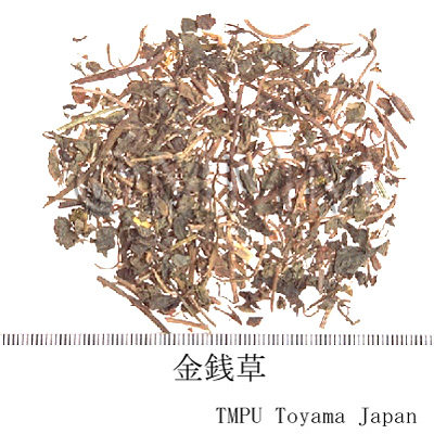 | 備考 | 現在日本で入手できる商品は香港市場品である. 中国南部諸省で胆石症や尿石症の特効薬と称して市販されている.その他,タデ科/Polygonaceae の ミズヒキ Polygonum filiforme Thunb. = P. virginianum L. var. filiforme (Thunb.) Merr.; Tovara filiformis (Thunb.) Nakai; T. virginiana (L.) Rafin. var. filiformis (Thunb.) Steward; Sunania filiformis (Thunb.) Rafin. の全草,サクラソウ科/Primulaceae の Lysimachia christinae Hance. の全草など多種の植物が金銭草と称される. | |||||