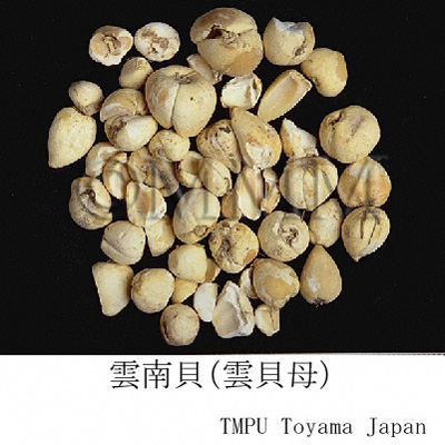 | 臨床応用 | 鎮咳,去痰,排膿薬として,煩熱,喉痺,目眩,咳嗽,口渇などに応用する.川貝は,潤肺,去痰,鎮咳の作用が強く,元気のない肺燥の咳嗽には川貝を用いる. | ||||||