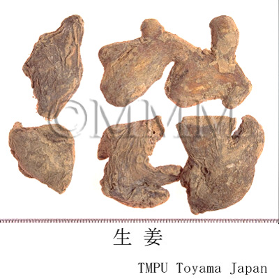 備考古来,漢方処方で用いられる生姜は,いわゆる新鮮なショウガのことで,乾姜は乾燥品である.したがって,漢薬市場の乾燥した生姜(乾生姜とも称す)は,漢方でいう乾姜を指す.では市場の乾姜は何かというと,生姜を蒸乾したもので,修治品(加工品)といえる.一方,現在中国では新鮮なものが生姜で,乾燥品が乾姜である.また修治品として炮姜がある.炮姜は先ずきれいな砂(蛤粉,滑石粉)を鍋に入れ,強火で熱した後,乾燥した皮付き生姜を入れて攪拌し,表面が盛り上がって褐色になったら取出し放冷したものである.