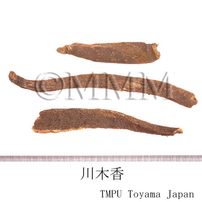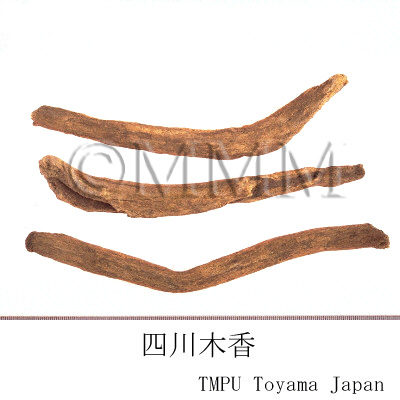 | 備考 | 正品の「木香」はキク科のSaussurea lappa Clarke (= Aucklandia lappa Decne.) の根.川木香は通常根頭部を焼いて調整する.かつてこれをInula racemosa Hook.f.(蔵木香)に充てたことがあったが誤りである. その他中国市場には「越西木香」と称して同属のVladimiria denticulata Lingの根が出回る. | |||||