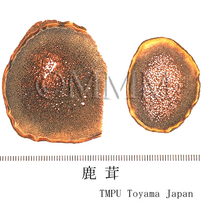 前者の幼角を「馬鹿茸」,後者からのものを「花鹿茸」または、「梅花鹿茸」と称しており,現在わが国に輸入される中国およびシベリア産のものはこの2種に限られ,特に前者が主である.