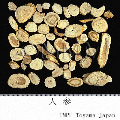 | 薬効 | [性味] 甘、微苦,微温. [帰経] 脾、肺、心、腎経. [効能] 大補元気,復脈固脱,補脾益肺,生津養血,安神益智. [主治] 体虚欲脱,肢冷脉徽,脾虚食少,肺虚喘咳,津傷口渇,内熱消渇,気血虧虚,久病虚贏,驚悸失眠,陽痿宮冷及び心力(機能)衰,心原性ショックに応用. | ||||||