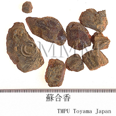 | 備考 | 中国長江流域,華南,台湾に分布する同属の フウ Liquidambar formosana Hance(楓,楓香樹)の樹脂を 「楓香脂」 と称し,同様に用いる.また福建省の Liquidambar edentata Merr.,広東省の L. chinensis Champ. の樹脂も利用できる可能性がある.