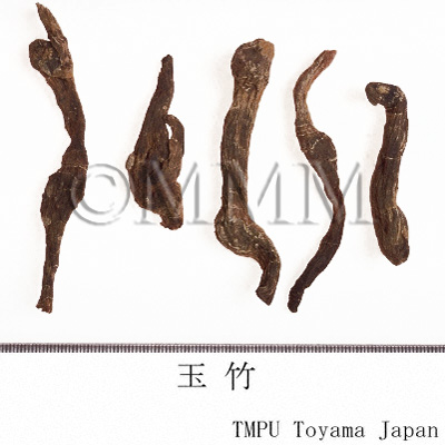 | 備考 | 『中華人民共和国薬典』には玉竹の原植物として,Polygonatum odoratum が規定される.しかし中国市場には P. macropodium なども見られ,さらに香港市場で黄精の原植物とされる P. sibiricum 等が確認された.玉竹の薬効は黄精と似ているが,玉竹は陰を補う作用が強く,黄精は気を補う作用が強い.臨床では使い分けられている. | |||||