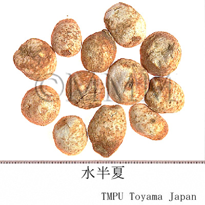 | 備考 | 半夏は加工(修治)して用いられることがあり,加工品には法半夏,姜半夏などがある.法半夏は甘草と生石灰,姜半夏は生姜と明礬をそれぞれ用いて加工する.法半夏は燥湿,化痰,姜半夏は降逆止嘔に多用される.中国産の半夏市場品中にまれに Pinellia pedatisecta Schott,P. tripartita Schott オオハンゲまたはテンナンショウ属 Arisaema spp. の塊茎が混入される.水半夏は Typhonium sp. の塊茎である. | |||||
