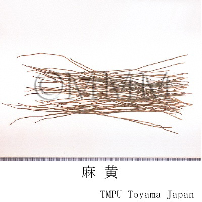 | 薬理作用 | 鎮咳,抗アレルギー作用(水,エタノールエキス),交感神経興奮(血圧上昇,気管支拡張,散瞳,発汗),中枢性鎮咳作用(ephedrine),抗炎症作用(pseudoephedrine). | |||||
