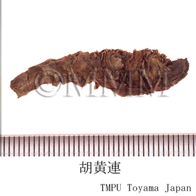 | 備考 | - 正倉院薬物の「黒黄連」は胡黄連で,このものの原植物は組織形態学(内鞘繊維の有無)及び成分化学(GC-MSによる比較)的検討から Picrorhiza scrophulariiflora であると考えられた.P. scrophulariiflora はネパール,中国のチベット自治区東南部,雲南省西北部及び四川省西部に分布する.『中華人民共和国薬典』収載品はこのものの根茎である.一方, P. kurrooa はインド,パキスタン,シッキム及びネパールなどに分布し,このものの根茎及び根はアーユルヴェーダで「Katuki」と称して黄疸,消化不良,発熱に用いられ,さらに現在では急性ウィルス性肝炎や気管支喘息にも応用されている. - 胡黄連は正倉院に納められてはいるが,大変高価で一般には入手不可能であった.そのため日本では代替品を探し,『証類本草』の附図からセンブリがこのものにあてられた.室町末期~江戸初期の頃であり,江戸初期にはそれが誤りであることに気づいている学者もいた.日本の民間薬としては代表的なセンブリ(当薬)はこうして開発された. - 中国東北諸省,朝鮮半島産の胡黄連はメギ科/Berberidaceae のタツタソウ(イトマキグサ)Jeffersonia dubia Benth. の根で 「鮮黄連」 ともいう. | |||||