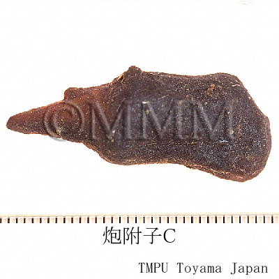 - 炮附子: 塩附子の外皮を剥ぎ2縦割して乾燥したもの.