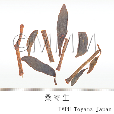 | 備考 | 本品はヤドリギ Viscum album L. var. coloratum (Komar.) Ohwi [=V. coloratum (Komar.) Nakai, V. album L. subsp. coloratum Komar.] および アカミヤドリギ V. album L. var. coloratum Ohwi forma rubro-aurantiacum (Makino) Ohwi の葉をつけた茎を乾燥したもの.市場では桑寄生,槲寄生,柳寄生,北寄生,黄寄生と呼ぶ. また Loranthus parasiticus (L.) Merr. (= Scurrula parasitica L.) の帯葉茎 (広寄生), オオバヤドリギ Loranthus yadoriki Sieb. ex Maxim. [= Taxillus yadoriki (Sieb.) Danser] の帯葉茎 (四川省で桑寄生,寄生苞,寄生子,柿寄生と称する) なども「桑寄生」として市販される.一般に北寄生 (東北, 華北) と広寄生 (華南) が多い.台湾市場の槲寄生はオオバヤドリギ Loranthus yadoriki, 広寄生は Viscum articulatum Burm. を基源としている. | |||||