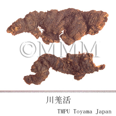 | Remarks | Kenkyōkatsu, produced in Korea, is the root or rhizome of Ostericum koreanum Kitagawa (= Angelica koreana Maxim.) of family Umbelliferae (Jap. name: Chosen'oniudo) or Ostericum grosseserratum Kitagawa (= Angelica uchiyamana Yabe) (Jap. name: Nioiudo). Both Kenkyōkatsu and Chōkyōkatsu, produced in Japan, are the roots or rhizomes of Angelica pubescens Maxim. (Jap. name: Shishiudo). Recently however, Japanese Qianghuo (Jap. name: Wakyōkatsu) is the slender roots of Aralia cordata Thunb. of family Araliaceae. Chinese Qianghuo is the root of genus Angelica of family Umbelliferae. Both Qianghuo and Duhuo (Araliae Cordatae Rhizoma) have benefits of expelling wind and removing dampness. They relieves pain and removes palsy as well. Qianghuo is a medicine of Taiyang meridians. It has the advantage of expelling dryness and diaphoresis, and should be used for exterior syndrome due to wind cold, while Duhuo has no effect of diaphoresis. Duhuo is a drug of Yin Minimum Kidney Meridian, and used with Xixin (Asiasari Radix), which has a beneficial effects on headache resulting from Yin Minor Channel. In ancient times, it was said "Qianghuo cures hives and Duhuo cures latent wind. Qianghuo tends to specialize in the exterior and Duhuo tends to specialize in the interior." | |||||