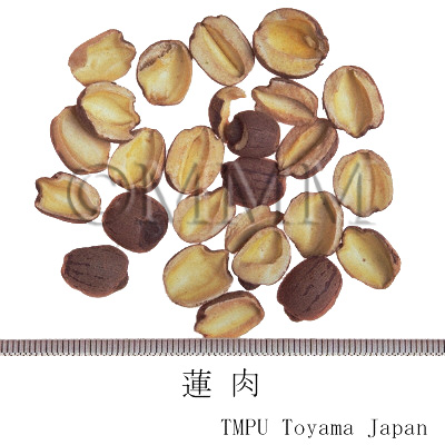 | Remarks | Nelumbinis Fructus (Jap. name: Sekirenshi) is the mature fruit of Nelumbo nucifera Gaertner (Jap. name: Hasu). It is applied to treat the complete loss of appetite due to diarrhea, vomiting, etc. Generally, the seed is used after removing the hard pericarp and the core. It is called Lianrou (Jap. name: Ren'niku). | |||||
