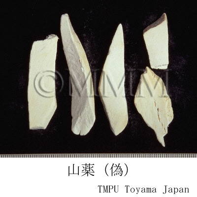 | Remarks | The Japanese Pharmacopoeia (18th edition) defines Dioscorea japonica (Jap. name: Yamanoimo) and D. batatas (Jap. name: Nagaimo) as Shanyao. In contrast, The Pharmacopoeia of the People's Republic of China 2020 edi. defines D. opposita as Shanyao. Shanyao in Henan Prov., which is called Waisanyaku or Waisan in Japan, is descended from D. opposita. Meanwhile, Shanyao in Guangxi Zhuangzu Autonomous Region is descended from D. alata L. (Jap. name: Daijo). Japanese Shanyao is made from Nagaimo which is cultivated for food. Nagaimo has been widely cultivated for food and has many types. They are roughly divided into groups of Nagaimo, Ichōimo and Tanbaimo. There are intermediate types between Nagaimo and Yamanoimo. Taiwanese Shanyao consists of species such as D. alata L., D. doryphora Hance, and there is also a fake product which is the tuber of Ipomoea batatas (L.) Poir of family Convolvulaceae (Jap. name: Amerikaimo). There is a difference in the process between Japanese and Chinese Shanyao. Japanese Shanyao is barked and then dried by heat. Chinese Shanyao is dried after being compressed in order to get rid of moisture (Maotiao Shanyao), or cut into chalk-like shape (Guang Shanyao). Japanese Shanyao is said to be of high quality. | ||||||