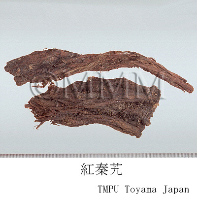 | Remarks | "Hongqinjiao" is the roots of Salvia przewalskii Maxim., congener of "Danshen" (= S. miltiorrhiza Bunge). It is used to treat rheumatism, to promote blood circulation and remove blood stasis. It is sometimes distributed as Danshen in Chinese market. In Japan, the roots of S. paramiltiorrhiza H. W. Li & X. L. Huang and S. sinica Migo are also circulated in the market as well as S. miltiorhiza. | ||||||
