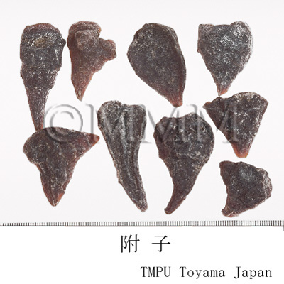 | Remarks | The Pharmacopoeia of the People's Republic of China defines "Fuzi (附子)" as the processed tuber (lateral roots) of Aconitum carmichaeli. The processed aconite root, which is compressed and heated, is used for many kinds of Kampo drug products. Since aconitum alkaloids have strong toxicity, there are many processes to reduce it. It is called "Yanfuzi (塩附子)," "Paofuzi (炮附子)," "Heifupian (黒附片)" or "Baifupian (白附片)" depending on each process. - Chinese "Yanfuzi (塩附子)", the tuber of Aconitum carmichaeli, is half dried after rinsed in the solution of salt water and bittern. - "Paofuzi (炮附子)" is the dried "Yanfuzi (塩附子)" after being peeled and divided lengthwise. - Both "Heifupian (黒附片)" and "Refupian (熟附片)" are made as follows : rinse roots in bittern, divide them lengthwise, stain with dye stuff, dry after steaming. - Though "Baifupian (白附片)" is the similar product to "Heifupian (黒附片)", it is barked and smoked by sulfur untill it becomes white at its final process. The Japanese "Shirakawa-bushi," the tuber of Aconitum japonicum, is made as follows : rinse it in salt water, coat with lime and dry. It is mentioned in the Japanese Pharmacopoeia that there are three ways in processing the aconite tuber. 1: Autoclaving. 2: Heating or autoclaving after rinsing in salt or rock salt solution. 3: Treating with calcium hydroxide after rinsing in salt solution. | ||||||