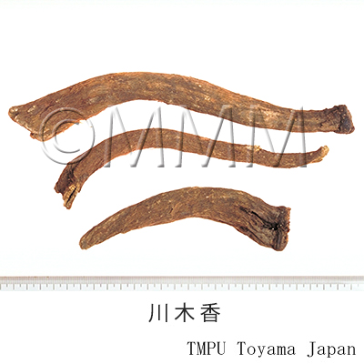 | Remarks | The real Muxiang (木香) is the root of Saussurea lappa Clarke (= Aucklandia lappa Decne.) of family Compositae. Chuanmuxiang (Jap. name: 川木香, Senmokkō) is generally processed by roasting the top of the root. In the past, it was erroneously applied to Inula racemosa Hook. f. (Jap. name: Zōmokkō). The congenetic root of Vladimiria denticulata Ling. is circulated in the Chinese market under the name of Yueximuxiang (越西木香). | |||||