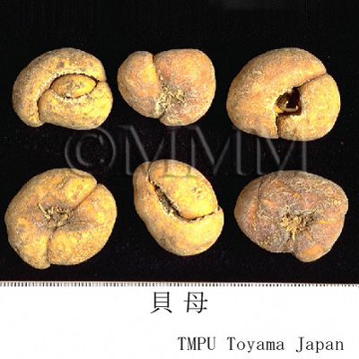 | Remarks | There are many kinds of Beimu. The major kinds are as follows: - Zhebeimu (浙貝母) or Zhebei (浙貝): Fritillaria thunbergii Miq. - Hubeibeimu (湖北貝母): F. hupehensis Hsiao et K.C. Hsia - Chuanbeimu (川貝母) or Chuanbei (川貝): F. cirrhosa D. Don, F. unibracteata Hsiao et K.C.Hsia, F. przewalskii Maxim. - Lubeimu (炉貝): F. delavayi Franch. - Yibeimu (伊貝母) or Yibei (伊貝): F. pallidiflora Schrenk, F. walujewii Regel - Pingbeimu (平貝母) or Pingbei (平貝): F. ussuriensis Maxim. Each of them is listed in the Pharmacopoeia of the People's Republic of China under the different articles [Lubeimu (炉貝) is included in Chuanbeimu (川貝母)]. Beimu is an expectorant drug and is divided into two groups. One of them consists of Zhebeimu (浙貝母) and Hubeibeimu (湖北貝母). The other consists of Chuanbeimu (川貝母), Lubeimu (炉貝), Yibeimu (伊貝母) and Pingbeimu (平貝母). The former is used in the treatment of cough, scrofula, carbuncle and wound poison. The latter is used for cough caused by deficiency of Yin or heat in the lung. Japanese Beimu is the bulb of "Amigasayuri (baimo)" which is the same kind as Zhebeimu (浙貝母). It is cultivated in Nara Prefecture and also called "Yamato-baimo". Beimu must not be used with crude drugs of Aconite root. | |||||