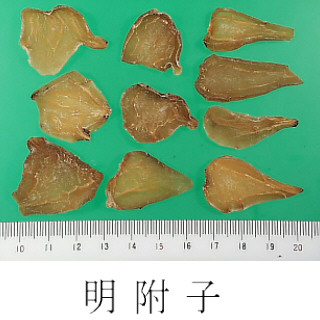 Synonyms加工附子, 塩附子, 炮附子, 黒附片, 白河附子