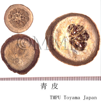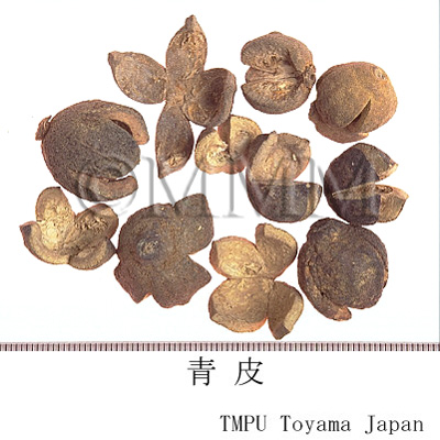 RemarksThe fallen young fruits are collected in May and June, and dried in the sun (known as Geqingpi [個青皮]). The immature fruits are collected in July and August, and a slit is made in the peal then the calyx is removed. It is known as Sihuaqingpi (四花青皮 or 四化青皮). The immature fruit has more flavonoid glycoside and synephrine. It also has more antioxidant properties.