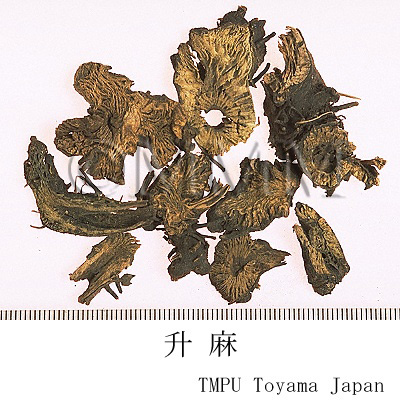 | Clinical application | As an antifebrile, antidote, and anti inflammatory drug, Shengma is applied for fever, headache, pharyngitis, cold, measles, and anal prolapse. | ||||||