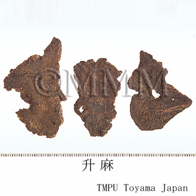 | Clinical application | As an antifebrile, antidote, and anti inflammatory drug, Shengma is applied for fever, headache, pharyngitis, cold, measles, and anal prolapse. | ||||||