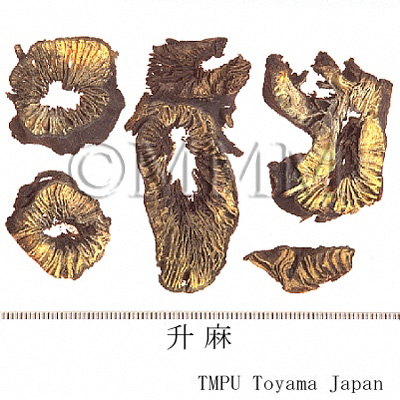 | Clinical application | As an antifebrile, antidote, and anti inflammatory drug, Shengma is applied for fever, headache, pharyngitis, cold, measles, and anal prolapse. | ||||||