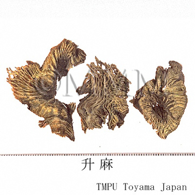 | Clinical application | As an antifebrile, antidote, and anti inflammatory drug, Shengma is applied for fever, headache, pharyngitis, cold, measles, and anal prolapse. | ||||||