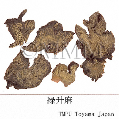| Clinical application | As an antifebrile, antidote, and anti inflammatory drug, Shengma is applied for fever, headache, pharyngitis, cold, measles, and anal prolapse. | ||||||