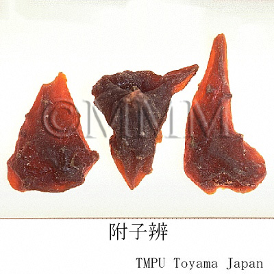 | Remarks | The Pharmacopoeia of the People's Republic of China defines "Fuzi (附子)" as the processed tuber (lateral roots) of Aconitum carmichaeli. The processed aconite root, which is compressed and heated, is used for many kinds of Kampo drug products. Since aconitum alkaloids have strong toxicity, there are many processes to reduce it. It is called "Yanfuzi (塩附子)," "Paofuzi (炮附子)," "Heifupian (黒附片)" or "Baifupian (白附片)" depending on each process. - Chinese "Yanfuzi (塩附子)", the tuber of Aconitum carmichaeli, is half dried after rinsed in the solution of salt water and bittern. - "Paofuzi (炮附子)" is the dried "Yanfuzi (塩附子)" after being peeled and divided lengthwise. - Both "Heifupian (黒附片)" and "Refupian (熟附片)" are made as follows : rinse roots in bittern, divide them lengthwise, stain with dye stuff, dry after steaming. - Though "Baifupian (白附片)" is the similar product to "Heifupian (黒附片)", it is barked and smoked by sulfur untill it becomes white at its final process. The Japanese "Shirakawa-bushi," the tuber of Aconitum japonicum, is made as follows : rinse it in salt water, coat with lime and dry. It is mentioned in the Japanese Pharmacopoeia that there are three ways in processing the aconite tuber. 1: Autoclaving. 2: Heating or autoclaving after rinsing in salt or rock salt solution. 3: Treating with calcium hydroxide after rinsing in salt solution. | ||||||