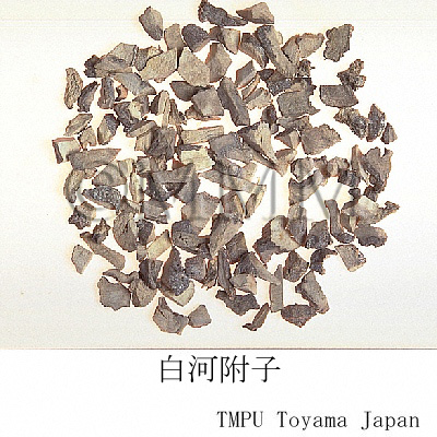 | Remarks | The Pharmacopoeia of the People's Republic of China defines "Fuzi (附子)" as the processed tuber (lateral roots) of Aconitum carmichaeli. The processed aconite root, which is compressed and heated, is used for many kinds of Kampo drug products. Since aconitum alkaloids have strong toxicity, there are many processes to reduce it. It is called "Yanfuzi (塩附子)," "Paofuzi (炮附子)," "Heifupian (黒附片)" or "Baifupian (白附片)" depending on each process. - Chinese "Yanfuzi (塩附子)", the tuber of Aconitum carmichaeli, is half dried after rinsed in the solution of salt water and bittern. - "Paofuzi (炮附子)" is the dried "Yanfuzi (塩附子)" after being peeled and divided lengthwise. - Both "Heifupian (黒附片)" and "Refupian (熟附片)" are made as follows : rinse roots in bittern, divide them lengthwise, stain with dye stuff, dry after steaming. - Though "Baifupian (白附片)" is the similar product to "Heifupian (黒附片)", it is barked and smoked by sulfur untill it becomes white at its final process. The Japanese "Shirakawa-bushi," the tuber of Aconitum japonicum, is made as follows : rinse it in salt water, coat with lime and dry. It is mentioned in the Japanese Pharmacopoeia that there are three ways in processing the aconite tuber. 1: Autoclaving. 2: Heating or autoclaving after rinsing in salt or rock salt solution. 3: Treating with calcium hydroxide after rinsing in salt solution. | ||||||