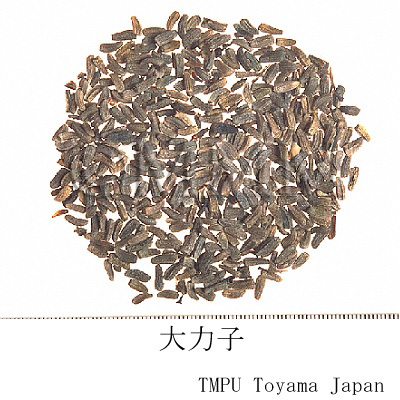 | Clinical application | As an antifebrile, antidote, expectorant and antiinflammatory drug, Niubangzi is applied for cold, cough, sore throat, persisting sputum, measles, carbuncles and sores. | |||||