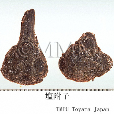 | Remarks | The Pharmacopoeia of the People's Republic of China defines "Fuzi (附子)" as the processed tuber (lateral roots) of Aconitum carmichaeli. The processed aconite root, which is compressed and heated, is used for many kinds of Kampo drug products. Since aconitum alkaloids have strong toxicity, there are many processes to reduce it. It is called "Yanfuzi (塩附子)," "Paofuzi (炮附子)," "Heifupian (黒附片)" or "Baifupian (白附片)" depending on each process. - Chinese "Yanfuzi (塩附子)", the tuber of Aconitum carmichaeli, is half dried after rinsed in the solution of salt water and bittern. - "Paofuzi (炮附子)" is the dried "Yanfuzi (塩附子)" after being peeled and divided lengthwise. - Both "Heifupian (黒附片)" and "Refupian (熟附片)" are made as follows : rinse roots in bittern, divide them lengthwise, stain with dye stuff, dry after steaming. - Though "Baifupian (白附片)" is the similar product to "Heifupian (黒附片)", it is barked and smoked by sulfur untill it becomes white at its final process. The Japanese "Shirakawa-bushi," the tuber of Aconitum japonicum, is made as follows : rinse it in salt water, coat with lime and dry. It is mentioned in the Japanese Pharmacopoeia that there are three ways in processing the aconite tuber. 1: Autoclaving. 2: Heating or autoclaving after rinsing in salt or rock salt solution. 3: Treating with calcium hydroxide after rinsing in salt solution. | ||||||