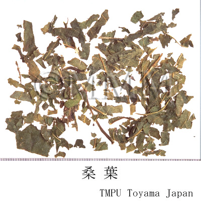| Remarks | The Japanese Sangye (桑葉) is the dried leaf, with or without sprig, of Mori bombycis (Jap. name: Yamaguwa) and Mori alba L. var. multicaulis Loudon (Jap. name: Rōso). It is taken as medicinal tea to prevent palsy and arteriosclerosis. | |||||