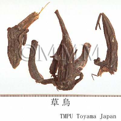 | Remarks | - The tubers of wild Aconitum have respective names depending on the production area and species, as follows: Sōuzu (Jap. name), Caowu, Wuyao, Jinniuqi, Dacaowu, Xiaoheiniu, Xuewu, Huangcaowu, Tengcaowu, Wanwuyao, Kaenshi (Jap. name), Tiebangchui. - Various kinds of Chinese Souzu: A. kusnezoffii (Heilongjiang), A. artemisaefolium Bar. et Skv. (Liaonig), A. paniculigerum Nakai, A. sczukini Turcz. (Northeast part), A. taipeicum Hand.-Mazz. (Shaanxi), A. karakolicum Rap., A. soongaricum Stapf (Xinjiang), A. sungpanense Hand.-Mazz. (Shaanxi, Gansu, Sichuan), A. hemsleyanum Pritz. (Sichuan, Hubei, Hunan, Shaanxi), A. stylosum Stapf, A. transsectum Diels, A. delavayi Franch. (Yunnan) and many other tubers of genus Aconitum. - Korean Sōuzu: Tubers of several Aconitum genus such as A. triphyllum Nakai (Jap. name: Mitsubatorikabuto). - Japanese Sōuzu: The tuber of A. japonicum Thunb. - The Pharmacopoeia of The People's Republic of China contains Chuanwu, the parent root of A. carmichaeli (harvested from late June to early August), and Caowu, the tuber of A. kusnezoffii (harvested in Autumn). Caowu is stronger in both toxicity and benefit than Chuanwu. Compared with Fuzi, Wutou has advantages of expelling wind and relieving pain, and has disadvantages of stimulating heart and dispelling cold. | ||||||