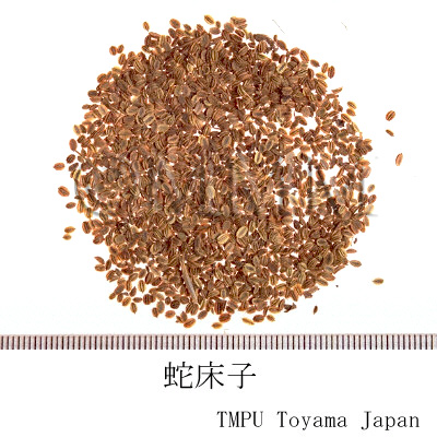 | Chemical constituent | Fatty acids T. japonica (*C1): 脂肪油約 / fatty oil about 10% Petroselinic acid, Myristine, Olein Monoterpenoids C. monnieri (*C1): 精油約 / essential oil about 1.3% l-Pinene, l-Camphene, Bornyl isovalerate Sesquiterpenoids T. japonica (*C1): 精油約 / essential oil about 1.4% alpha-Cadinene, Torilin Coumarins C. monnieri (*C1): Columbianadin, O-Acetylcolumbianetin, Columbianetin, O-Isovalerylcolumbianetin, Cnidiadin, Archangelicin, Edultin, 2'(S),3'(R)-Isobutyryloxy-O-acetyl-2',3'-dihydrooroselol, Bergapten, Isopimpinellin, Osthol C. monnieri (*C2): Cnidimonal, Cnidimarin, 5-Formylxanthotoxol, 2'-Deoxymeranzin hydrate, Osthol, Imperatorin, Isopimpinellin, Bergapten, Xanthotoxin, Xanthotoxol, 5-Hydroxyxanthotoxol, Auraptenol, Murrayacarpin A, Diosmetin, 7-Methoxy-8-formylcoumarin, Meranzin hydrate, Cnindimol B, Alloimperatorin, Cnidimoside | |||||