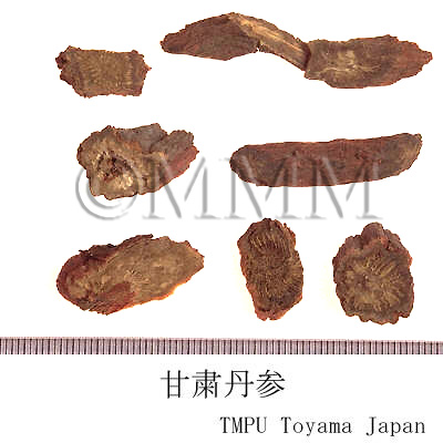 | Remarks | "Hongqinjiao" is the roots of Salvia przewalskii Maxim., congener of "Danshen" (= S. miltiorrhiza Bunge). It is used to treat rheumatism, to promote blood circulation and remove blood stasis. It is sometimes distributed as Danshen in Chinese market. In Japan, the roots of S. paramiltiorrhiza H. W. Li & X. L. Huang and S. sinica Migo are also circulated in the market as well as S. miltiorhiza. | ||||||
