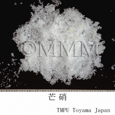 | Remarks | The ancient Mangxiao (芒硝) was the magnesium sulfate crystal, MgSO4・7H2O. It was also called Bagashō (馬牙消), Eishō (英消), Shōseki (消石), etc. Though sodium sulfate is the original mineral of Mangxiao according to the Japanese Pharmacopoeia at present, it should be the original mineral of Bokushō (朴消). Mangxiao stored in the Shosoin Storehouse is magnesium sulfate crystal. |