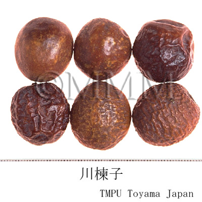 | Remarks | In case Chuanlianzi derived from Melia toosendan Sieb. et Zucc. (Jap. name: Tōsendan) was insufficient, the fruit of congener M. azedarach L. var. azedarach (Jap. name: Tokiwasendan) is sometimes substituted for it. The fruit of M. azedarach L. var. subtripinnata Miq., Japanese Sendan, is not available in the market. Kurenpi is the bark or root bark of Tōsendan or Tokiwasendan. Though it has the same effects as Chuanlianzi, the bark has stronger insecticidal effect and the fruit has stronger analgesic effect. Nimba is Melia azadirachta L. (= Azadirachta indica A. Juss.). It is a typical Ayurvedic drug and the parts used are the bark, leaf, flower, fruit and seed. | |||||