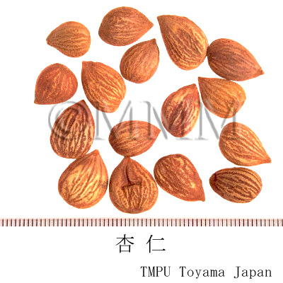 | Remarks | The Japanese Pharmacopoeia defines the origin of Xingren as seed of P. armeniaca and its variant P. armeniaca var. ausu, and P. sibirica L. (Jap. name: Mōkoanzu). The Pharmacopoeia of People's Republic of China defines the origin of Kuxingren as seed of P. mandshurica (Maxim.) Koehne (Jap. name: Manshūanzu), in addition to the above. In China, "Tianxingren" (used for food) is distinguished from "Kuxingren" which is used as medicine. Their amygdalin content are different. The amygdalin content in "Kuxnigren" is 3 to 5% and that in "Tianxingren" is 0.11%. The amygdalin is transformed into mandelonitorile by emulsin (beta-glucosidase) etc., which coexist in Xingren. Finally, it generates benzaldehyde, glucose and hydrocyanic acid. "Xingrenshui" (Jap. name: Kyōninsui) is a cough remedy and expectorant drug, which has major components of benzaldehyde and hydrocyanic acid. "Kyōninsui" is manufactured by steam distillation of "Xingren" after removing the fatty oil. "Taoren" (Peach Kernel) is another crude drug of semens which belongs to genus Purunus and contains amygdalin (approximately 2%). Xingren has the benefit of promoting the normal flow of vital energy and water in the Five Elements. It is used for the syndrome of upper burner and applied for the constipation with stagnation of qi. Meanwhile, "Taoren" has the benefit of promoting circulation of blood. It is used for the syndrome of lower burner and applied to the constipation with blood stasis. | |||||