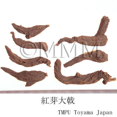 | Remarks | At present, three species of Daji (大戟) are distributed in China, Hongyadaji (紅芽大戟) of family Rubiaceae, Caodaji (草大戟) of family Leguminosae and Jingdaji (京大戟) of family Euphorbiaceae. Though each plant belongs to a different family, they are all called Daji. By nature, the real Daji described in materia medicas is Jingdaji. However, only Hongyadaji is imported to Japan at present. Jingdaji: the root of Euphorbia pekinensis Rupr. of family Euphorbiaceae. Once, it was used in Jiangsu Prov., Shanghai city and a part of Anwhei Province. In an area of Jiangsu Prov., the root of Indigofera sp. of family Leguminosae is used as Caodaji. | |||||