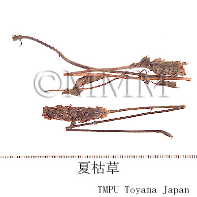 | Remarks | A part of Korean Xiakucao is the whole plant of Thesium chinense Turcz. of family Santalaceae (Jap. name: Kanabikisō) which is also called Dokagosō (Jap. neme). Hakumokagosō, produced in China, is the whole plant of Ajuga decumbens Thunb. of family Labiatae (Jap. name: Kiransō) or other Ajuga genus. In a part of Yunnan Prov., the whole plant ofA. bracteosa Wall. is called Xiakucao. In Japan, Kinransō is a folk medicine for gastro-intestine and skin boils, and used as a bath agent. | |||||