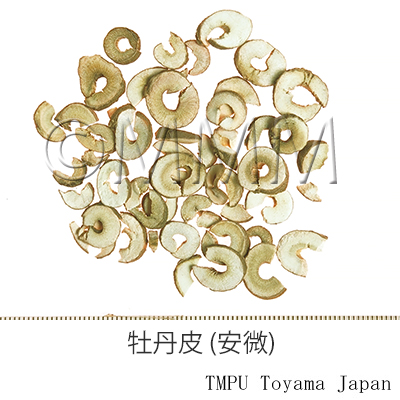 RemarksThere are many varieties of peony. The origin of Mudanpi is complicated and the composition of the chemical component varies slightly according to the species. The Mudanpi without core, which is produced in Nara Prefecture, is good quality. The best product in China is produced at Tonglingfenghuangshan in Anhui Prov. which is called "Fenghuangmudanpi" or "Fengdanpi". The Japanese Pharmacopoeia defines Mudanpi as the one which contains not less than 1.0%(JP17) but 0.9%(JP18) of Paeonol.