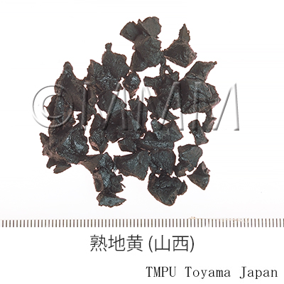 | Remarks | "Shudihuang" is processed with wine: it is made by steaming after mixing with "Huangjiu", a kind of rice wine such as "Shaoxingjiu". Then it is dried by daylight. This process, steaming and drying, is repeated 9 times. Steamed "Shudihuang": it is made by steaming without "Huangjiu". The steaming and drying process is repeated 9 times too. Comparing with "Kanjiō" (Unprepared Rehmannia Root), "Shudihuang" tends to have less or no iridoid glycoside such as catalpol, and has more monosaccharides. | ||||||
