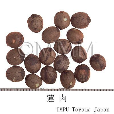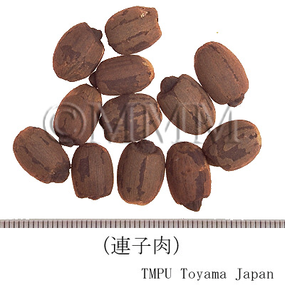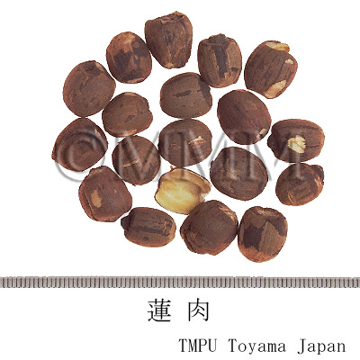 | Remarks | Nelumbinis Fructus (Jap. name: Sekirenshi) is the mature fruit of Nelumbo nucifera Gaertner (Jap. name: Hasu). It is applied to treat the complete loss of appetite due to diarrhea, vomiting, etc. Generally, the seed is used after removing the hard pericarp and the core. It is called Lianrou (Jap. name: Ren'niku). | |||||