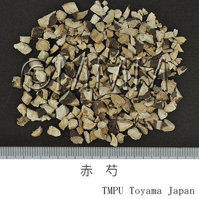 | Chemical constituent | Monoterpenoids P. lactiflora Pall. var. trichocarpa Stern. (*C1): Paeoniflorin, Albiflorin, Oxypaeoniflorin, Paeoniflorigenone, Paeonilactones P. albiflora Pall. var. trichocarpa Bunge 代謝物/metabolites (*C2, C3): Paeonilactone-A, Paeonilactone-B, Paeonilactone-C P. albiflora Pall. (*C7-C16): Paeoniflorin, Oxypaeoniflorin, Benzoylpaeoniflorin, Desbenzoylpaeoniflorin, Albiflorin, Paeoniflorigenone, 6-O-Acetylpaeoniflorigenone 以下代謝物/the followings are metabolites; 7S-Paeonimetaboline I, 7R-Paeonimetaboline I, 6-O-Acetylpaeonimetaboline I, Paeonimetaboline II, Paeonimetaboline III, Paeonilactone-A(Metabolite-A1), Paeonilactone-B(Metabolite-A2), Metabolite A1-acetate, 7S-Paeonimetaboline-6-O-3,5-dinitrophenyl carbamate, 7R-Paeonimetaboline-6-O-3,5-dinitrophenyl carbamate, 7S-8-(2-Carboxyethylthio)paeonimetabolin I, 7R-8-(2-Carboxyethylthio)paeonimetabolin I, 7S-8-(2-Hydroxyethylthio)paeonimetabolin I, 7R-8-(2-Hydroxyethylthio)paeonimetabolin I, 7S-8-Benzoylthiopaeonimetabolin I, 7R-8-Benzoylthiopaeonimetabolin I, 7R-8-(Carboxymethylthio)paeonimetabolin I, 7S-8-(Carboxymethylthio)paeonimetabolin I, 7R-8-(2'-Carboxyethylthio)paeonimetabolin I, 7S-8-(2'-Carboxyethylthio)paeonimetabolin I, 7R-8-(5'-Carboxyethylthio)paeonimetabolin I, 7S-8-(5'-Carboxyethylthio)paeonimetabolin I, Pentaacetylpaeoniflorin, Tetraacetylpaeoniflorin, Albimetaboline I, Albimetaboline II P. albiflora 代謝物/metabolites (*C17-C19): 7S-Paeonimetaboline I, 7R-Paeonimetaboline I, Paeonimetaboline II, Paronimetaboline III Triterpenoids P. lactiflora (*C4,C5,C6): Palbinone Tannins P. lactiflora var. trichocarpa (*C1): Tetragalloylglucose, Pentagalloylglucose, Hexagalloylglucose P. albiflora (*C7): Gallotannins (*C20): Tetra - Undecagalloylglucose, d-Catechin, Procyanidin B-1 Other aromatic compounds P. lactiflora var. trichocarpa(*C1): benzoic acid | |||||