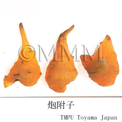 - "Paofuzi (炮附子)" is the dried "Yanfuzi (塩附子)" after being peeled and divided lengthwise.